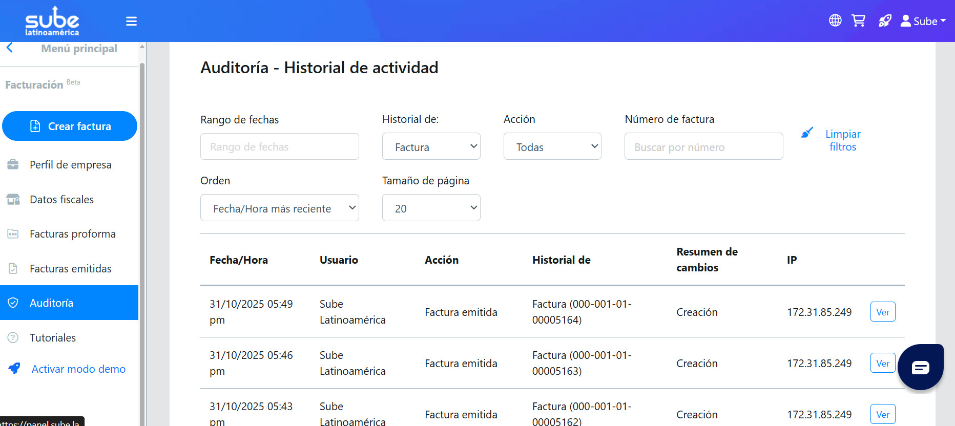 El sistema guarda automáticamente el historial de todos los rangos de facturación que ingreses, para que tengas un registro claro y ordenado de cuántas facturas emitiste en cada rango, fechas y todos los datos relevantes.